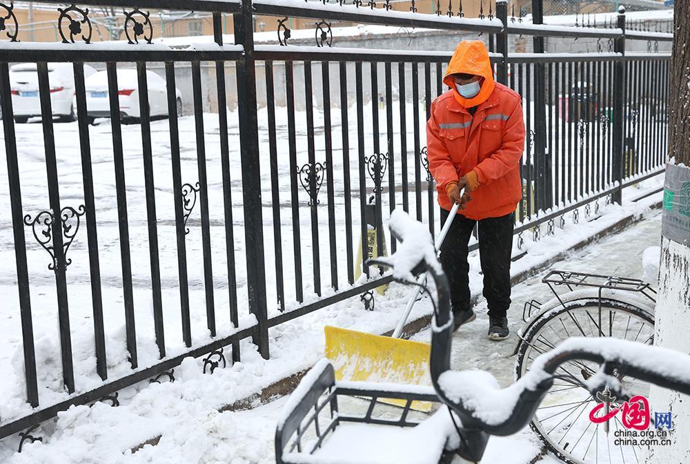 12月10日夜間開始,北京各地天空陸續(xù)飄雪,北京今冬首場降雪緩緩落下。預計11日白天,北京仍有小雪或零星小雪天氣,最高氣溫1℃左右,體感寒冷。圖為12月11日,工作人員在清理道路上的積雪。中國網(wǎng)記者 劉楨珂攝影