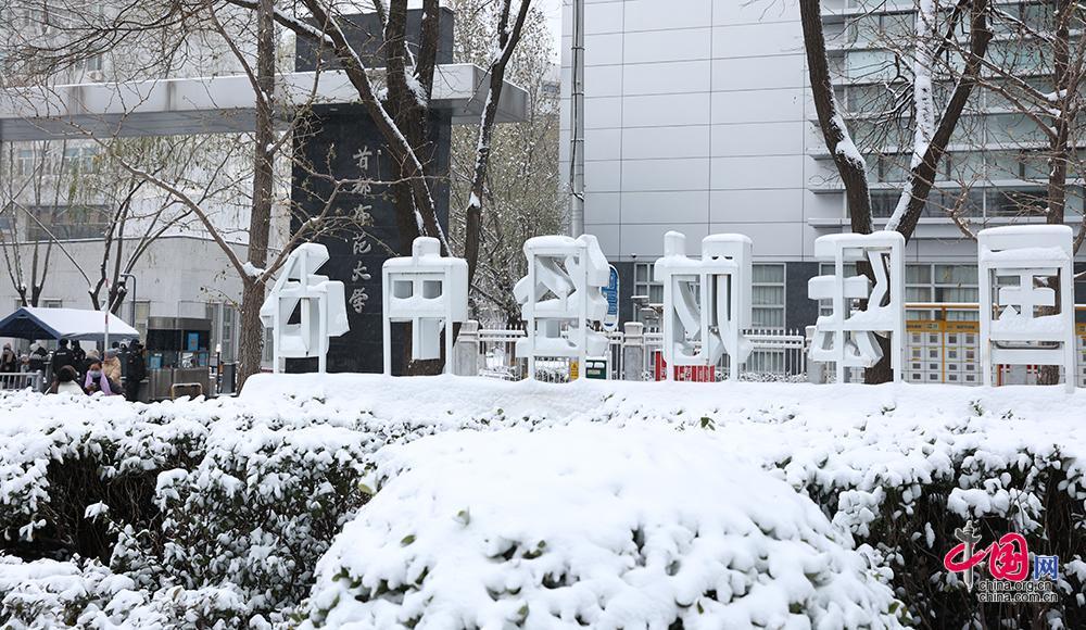 12月10日夜間開始,北京各地天空陸續(xù)飄雪,北京今冬首場降雪緩緩落下。預計11日白天,北京仍有小雪或零星小雪天氣,最高氣溫1℃左右,體感寒冷。圖為12月11日首都師范大學。中國網(wǎng)記者 劉楨珂攝影