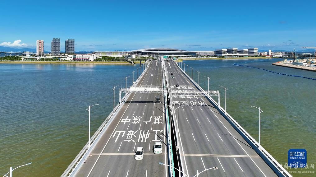 7月11日,車輛在港珠澳大橋上行駛(無人機照片)。新華社發(fā)(梁建華 攝)
