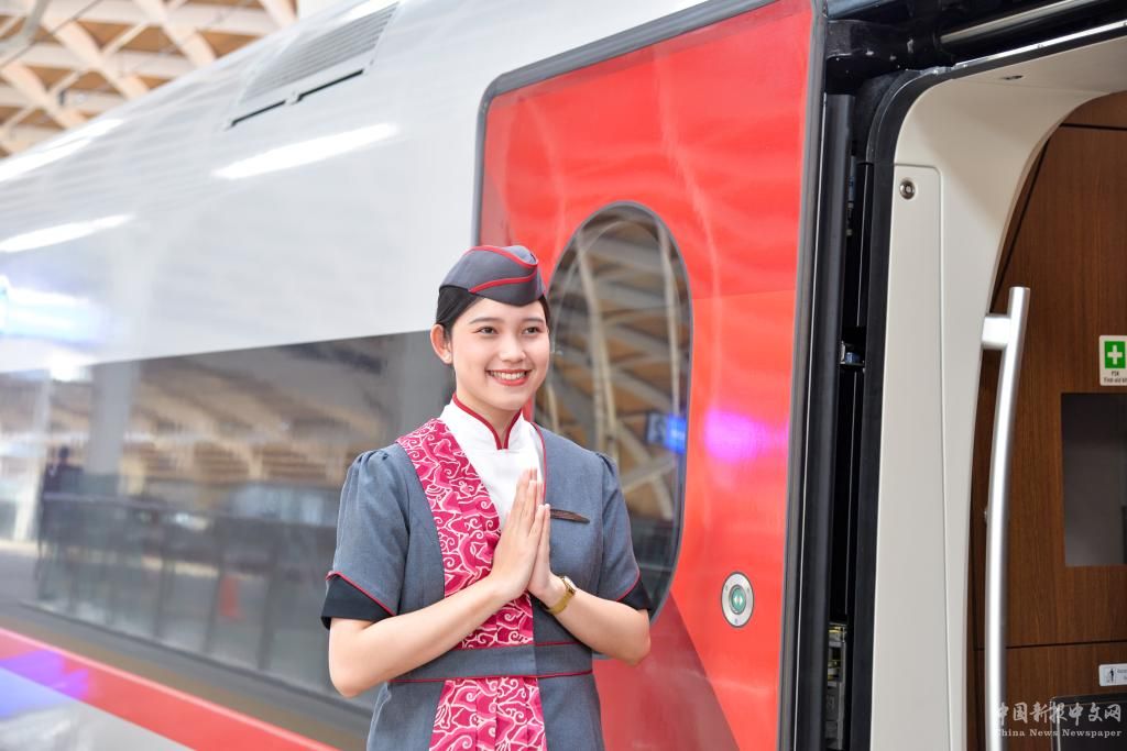 12月12日,乘務(wù)人員在印度尼西亞雅加達的哈利姆車站站臺歡迎乘坐雅萬高鐵的乘客。新華社記者徐欽攝