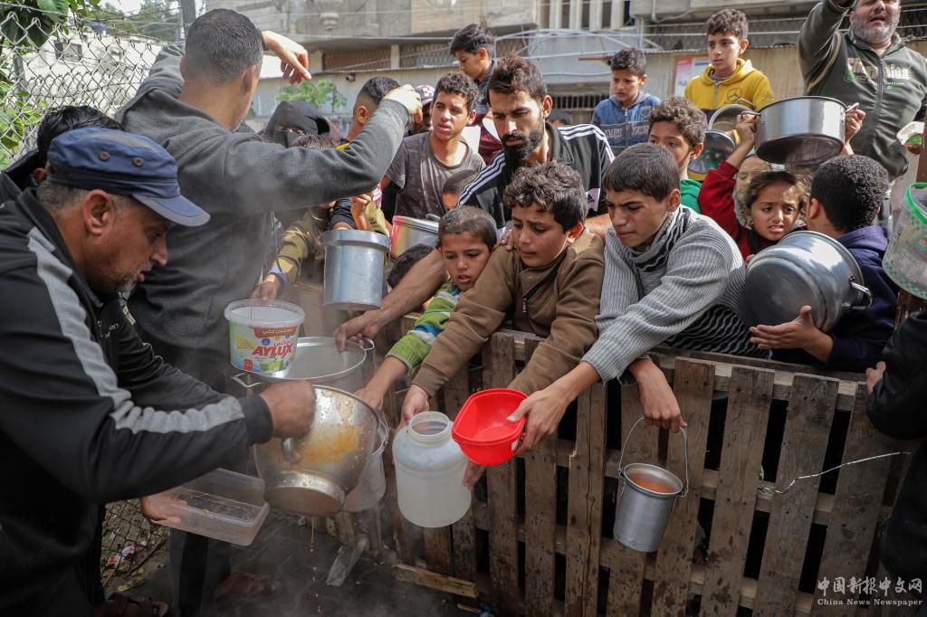11月19日,在加沙地帶南部城市拉法,人們領(lǐng)取救濟食物。新華社發(fā)(里澤克·阿卜杜勒賈瓦德攝)