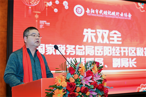國(guó)家稅務(wù)總局岳陽(yáng)經(jīng)開(kāi)區(qū)稅務(wù)局黨委委員、副局長(zhǎng)朱雙全受國(guó)家稅務(wù)總局岳陽(yáng)市稅務(wù)局黨委委員、總會(huì)計(jì)師湛波委托致辭,展望 2024,岳陽(yáng)市各級(jí)稅務(wù)部門將與市代理記賬行業(yè)協(xié)會(huì)一道,以建立“信用+風(fēng)險(xiǎn)”監(jiān)督機(jī)制為主線,加強(qiáng)黨建引領(lǐng),促進(jìn)執(zhí)業(yè)規(guī)范,強(qiáng)化日常監(jiān)管,優(yōu)化支持服務(wù);他希望該協(xié)會(huì)及成員單位認(rèn)真遵守有關(guān)行業(yè)規(guī)則,誠(chéng)實(shí)守信,正直自律,勤勉盡責(zé),自覺(jué)維護(hù)職業(yè)形象,廉潔從業(yè),為岳陽(yáng)市經(jīng)濟(jì)社會(huì)發(fā)展貢獻(xiàn)更大力量。