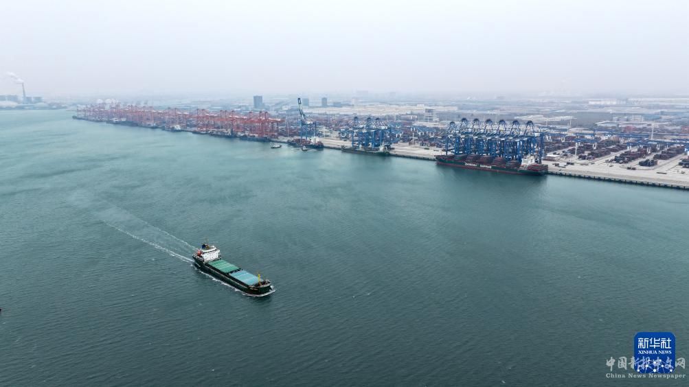 一艘滿載貨物的海輪駛離廣西欽州港碼頭(3月1日攝,無人機(jī)照片)。