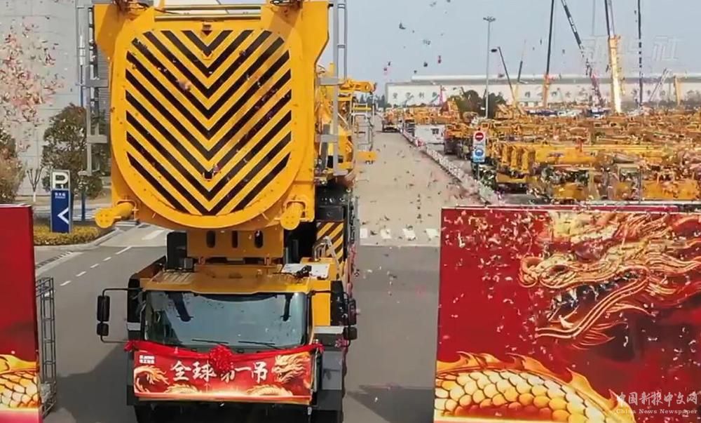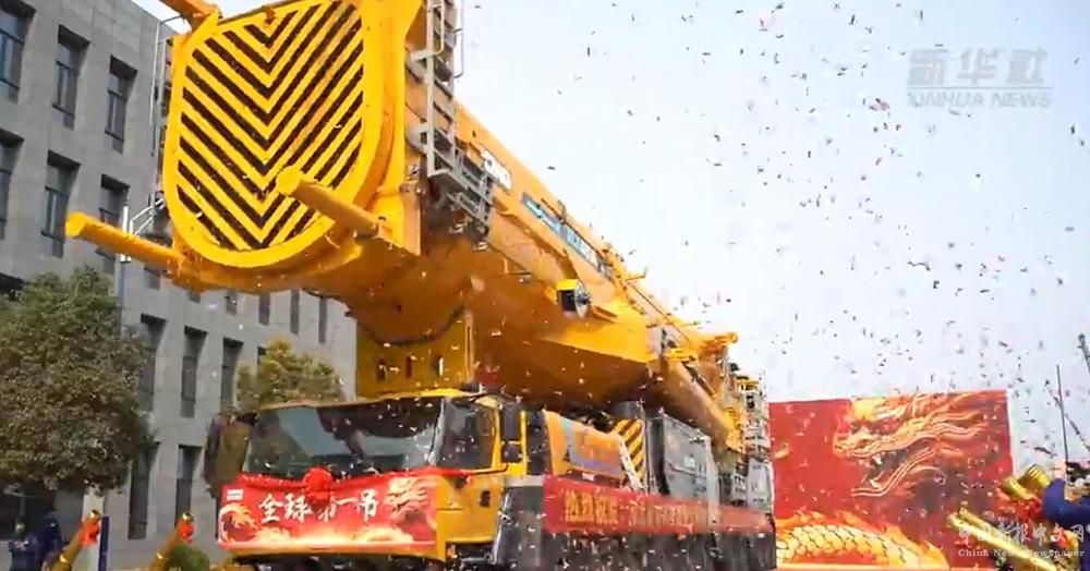 4000噸級全球最大輪式起重機在江蘇徐州發(fā)車 圖片來源:視頻截圖