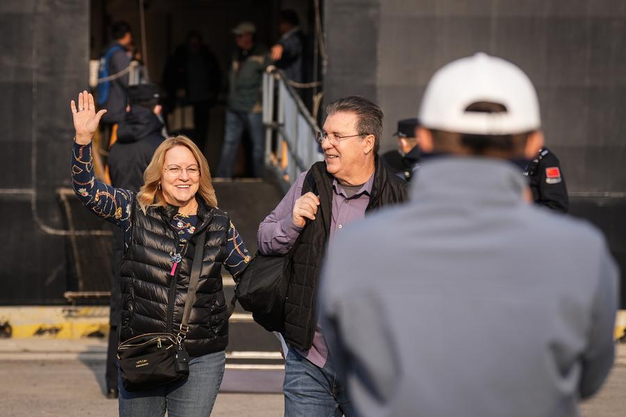 為了更好服務(wù)游客,中國多地采取一系列措施。天津邊檢總站東疆邊檢站制定工作預(yù)案,開足查驗通道,做好“翠德丹”號游客的通關(guān)保障。