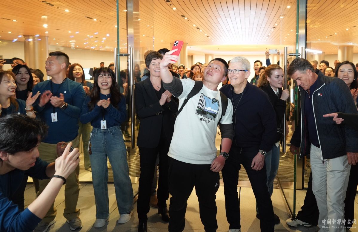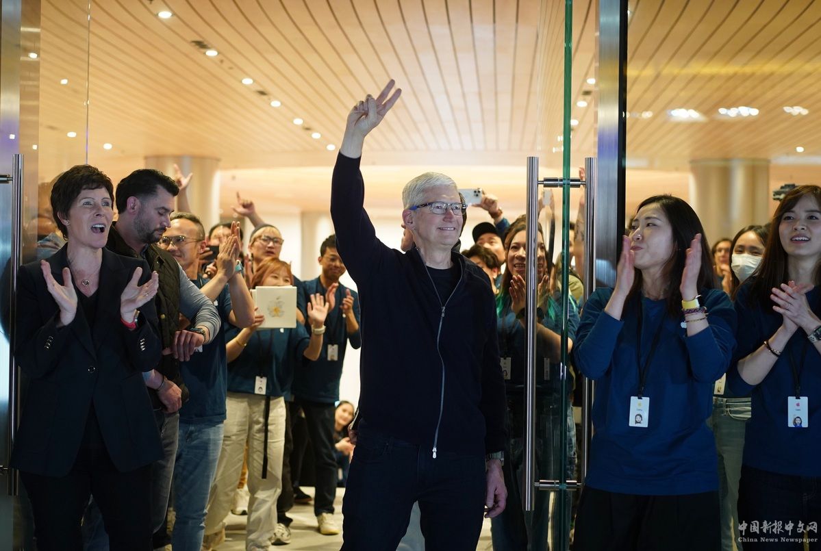 蘋果公司首席執(zhí)行官庫克出席開業(yè)活動。中國日報記者 高爾強 攝