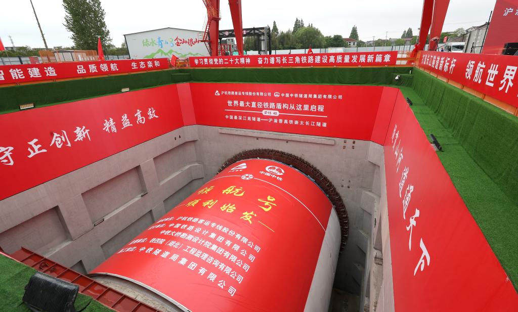隨著刀盤緩緩轉(zhuǎn)動,世界最大直徑高鐵盾構(gòu)機“領(lǐng)航號”4月29日從上海崇明順利始發(fā),標志著滬渝蓉高鐵崇太長江隧道全面進入盾構(gòu)施工階段,開啟超大直徑盾構(gòu)獨頭掘進穿越長江之旅。