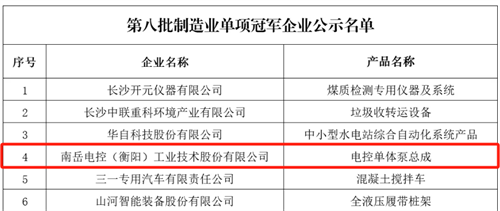 近日,國(guó)家工信部、中國(guó)工業(yè)經(jīng)濟(jì)聯(lián)合會(huì)發(fā)布第八批全國(guó)制造業(yè)單項(xiàng)冠軍企業(yè)名單,坐落在衡陽(yáng)高新區(qū)的南岳電控(衡陽(yáng))工業(yè)技術(shù)股份有限公司(下文簡(jiǎn)稱(chēng)南岳電控),憑借電控單體泵總成的卓越市場(chǎng)表現(xiàn),榮耀上榜!