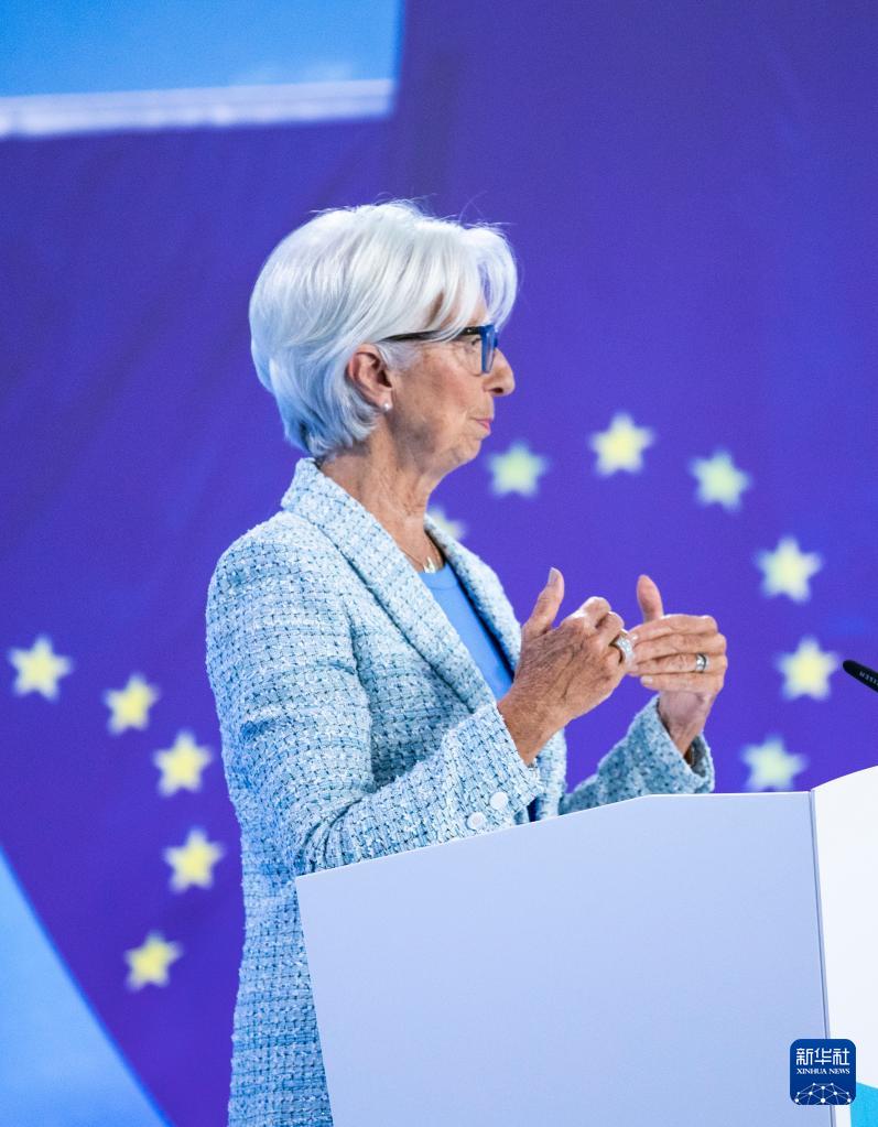 6月6日,歐洲中央銀行行長(zhǎng)拉加德在德國(guó)法蘭克福歐洲中央銀行總部出席新聞發(fā)布會(huì)。