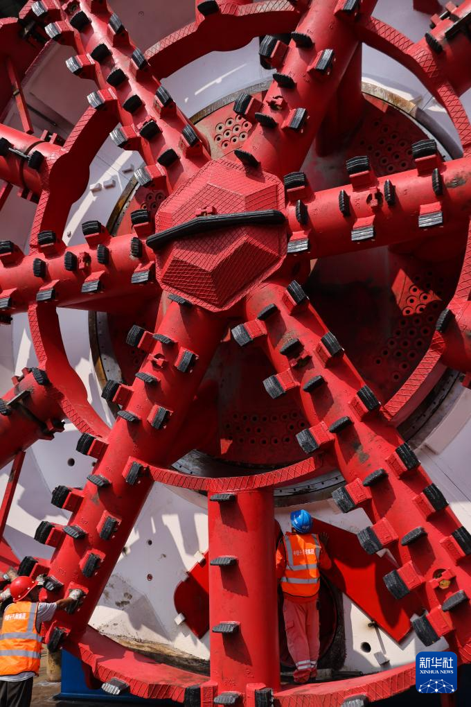 8月27日,施工人員在組裝一臺經(jīng)過再制造的大直徑盾構(gòu)機刀盤。這臺2010年出廠的盾構(gòu)機本已到報廢年限,經(jīng)過設備再制造,性能還得到進一步提升。