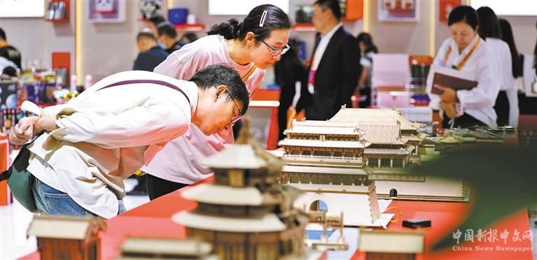 9月12日,服貿(mào)會(huì)首鋼園展區(qū),觀眾在參觀一組以北京中軸線為主題的展品。這是“北京中軸線——中國(guó)理想都城秩序的杰作”被正式列入《世界遺產(chǎn)名錄》后,相關(guān)展品再次來(lái)到服貿(mào)會(huì)的展臺(tái)。