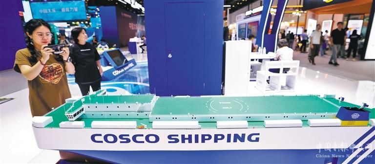 9月14日,服貿(mào)會(huì)國(guó)家會(huì)議中心展區(qū),中國(guó)遠(yuǎn)洋海運(yùn)集團(tuán)展出的自主研發(fā)汽車船智能配載系統(tǒng),實(shí)現(xiàn)全船“分鐘級(jí)”快速配載。