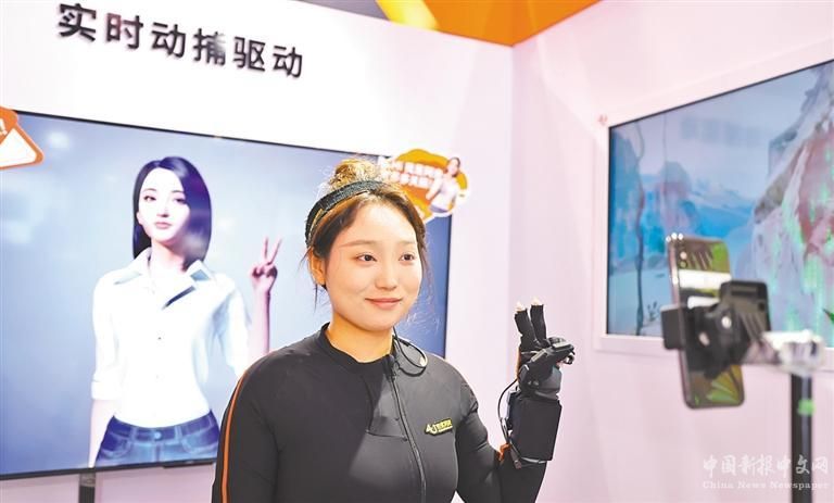 9月14日,在服貿(mào)會(huì)國(guó)家會(huì)議中心展區(qū)世優(yōu)科技展臺(tái),工作人員在展示實(shí)時(shí)動(dòng)作捕捉驅(qū)動(dòng)技術(shù)。