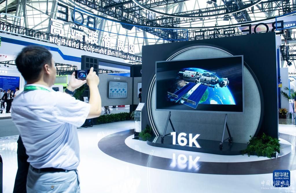 9月20日,觀眾在2024世界制造業(yè)大會(huì)展館內(nèi)了解16K裸眼3D屏幕。