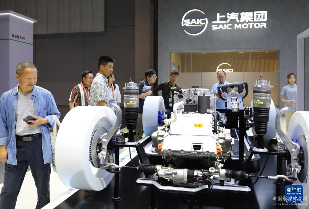 9月24日,參觀者在上汽集團(tuán)星云純電專屬系列化平臺模型前駐足觀看。