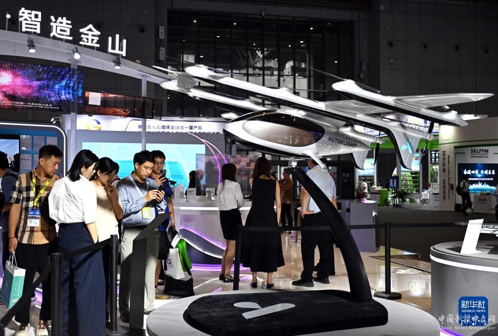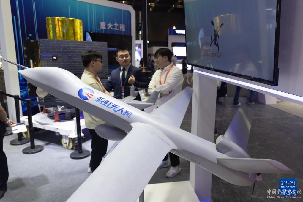 9月24日,參觀者在一無人機(jī)展品前駐足觀看。