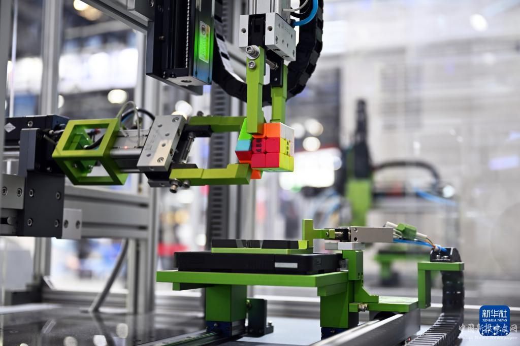 9月24日,一臺智能機(jī)器人在拼魔方。