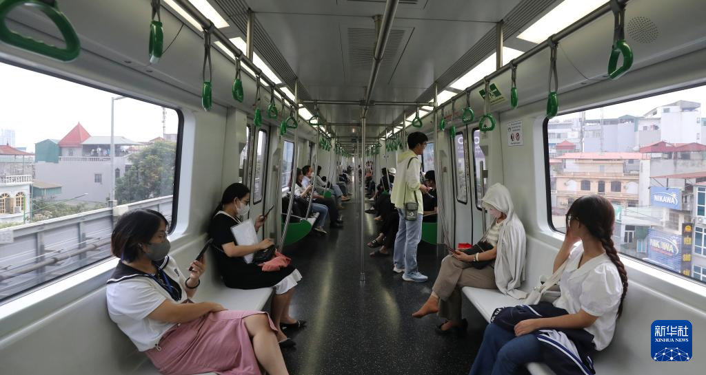10月9日,市民乘坐越南河內(nèi)輕軌吉靈-河?xùn)|線列車。
