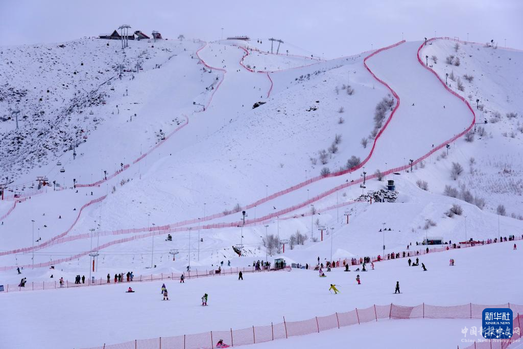 12月31日,雪友在新疆阿勒泰將軍山國際滑雪度假區(qū)滑雪。
