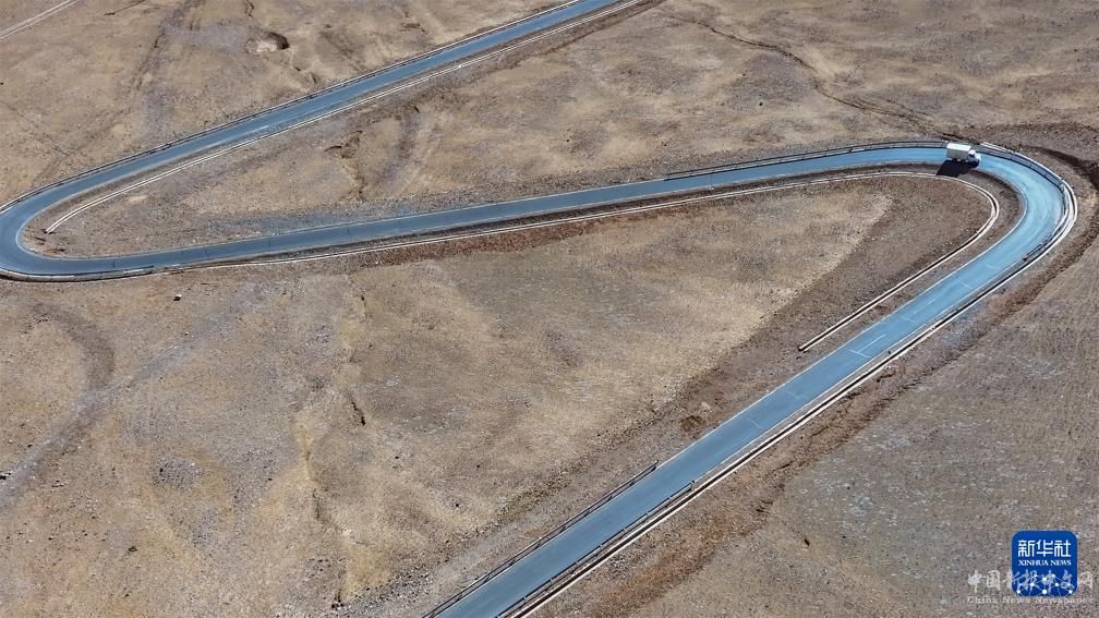 申扎縣供銷合作社為馬躍鄉(xiāng)貝嘎四村偏遠(yuǎn)鄉(xiāng)鎮(zhèn)果蔬配送試點項目直銷點配送新鮮果蔬的貨車,行駛在盤山公路上,這個村距離申扎縣城150公里(無人機(jī)照片,1月5日攝)。