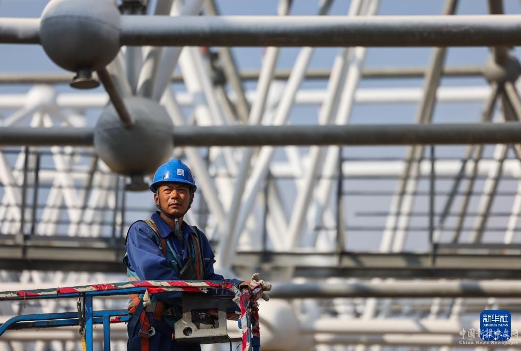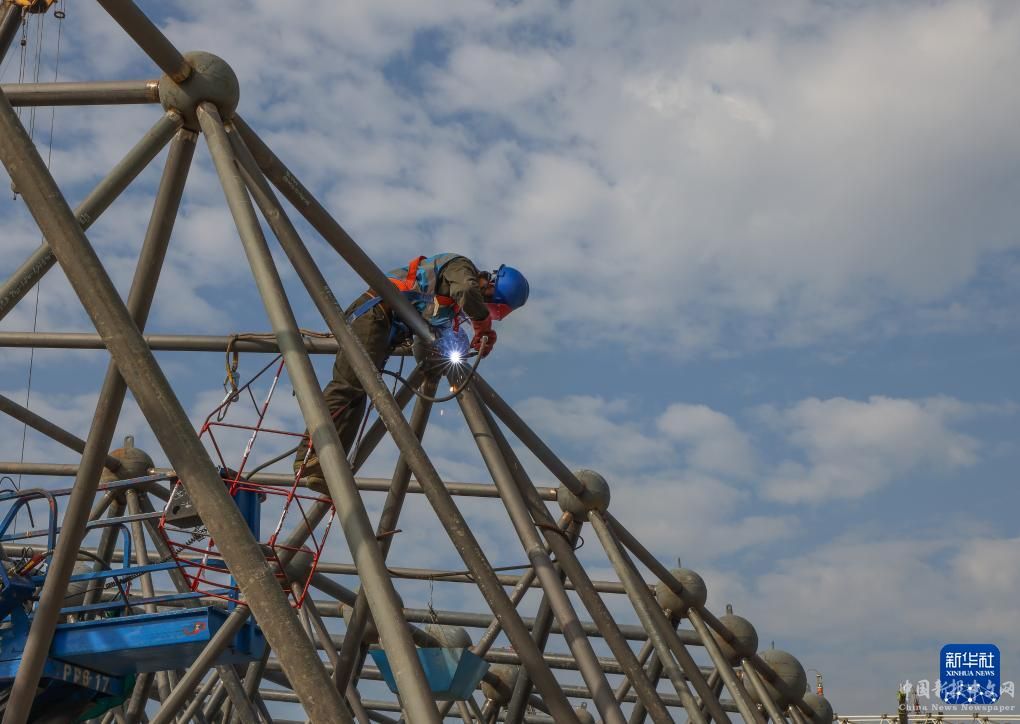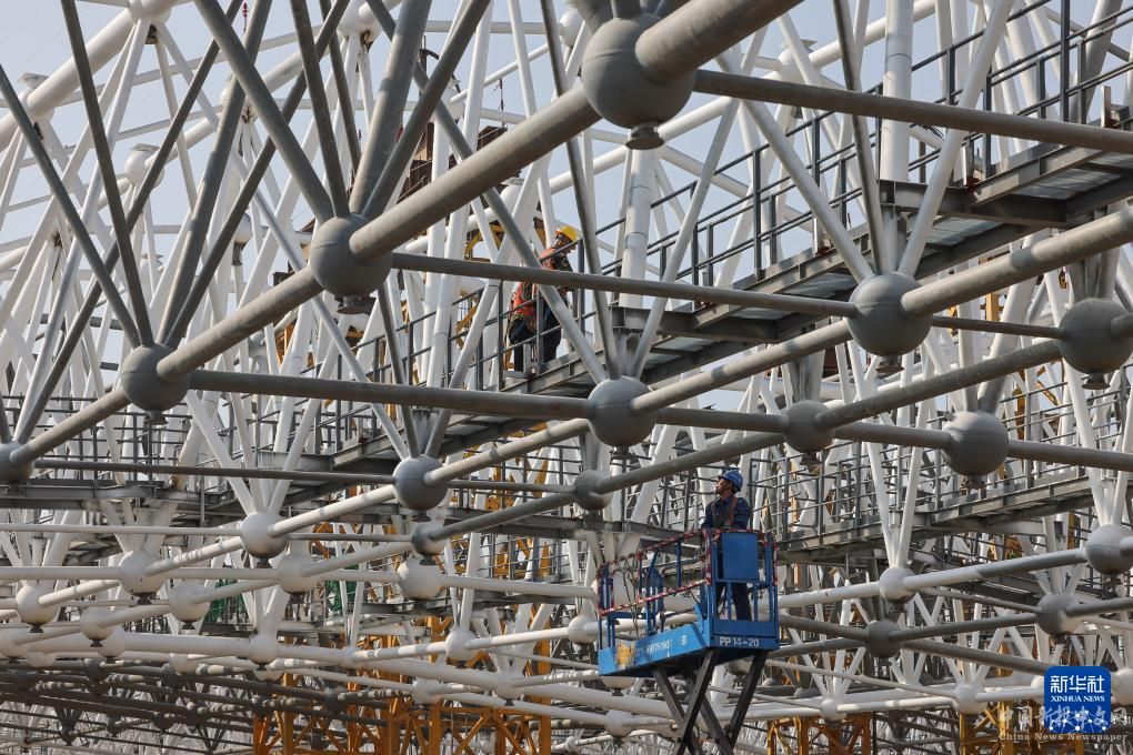 1月5日,建設(shè)者在廣州白云國際機(jī)場T3航站樓進(jìn)行鋼結(jié)構(gòu)網(wǎng)架施工。