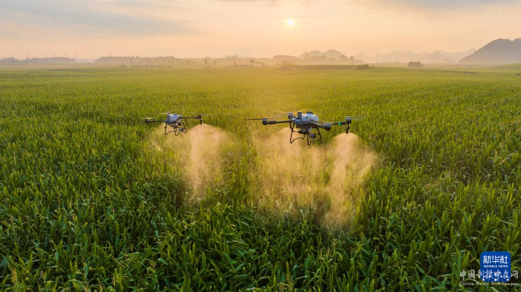 大疆農(nóng)業(yè)無(wú)人機(jī)T60(右)與T25P在田間作業(yè)(資料照片)。