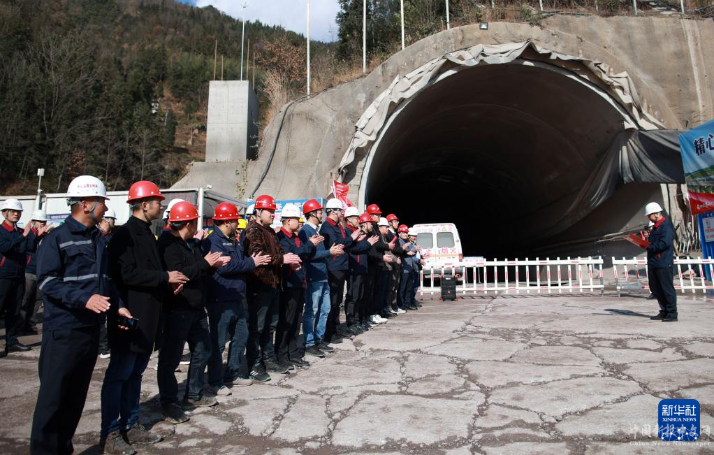 1月7日,建設者在樂民隧道出口處慶祝貫通。