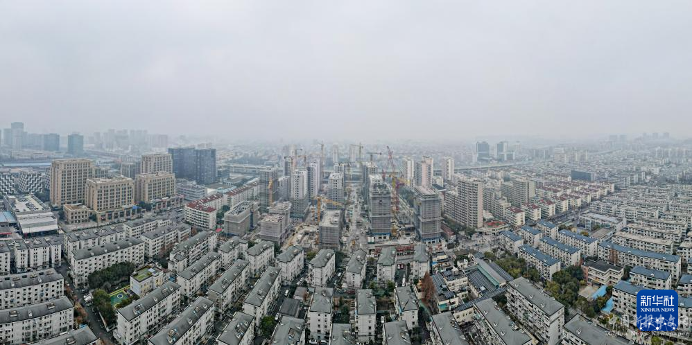 空中俯瞰彭一小區(qū)非成套舊住房改造工程建設(shè)工地(1月10日攝,無人機照片)。