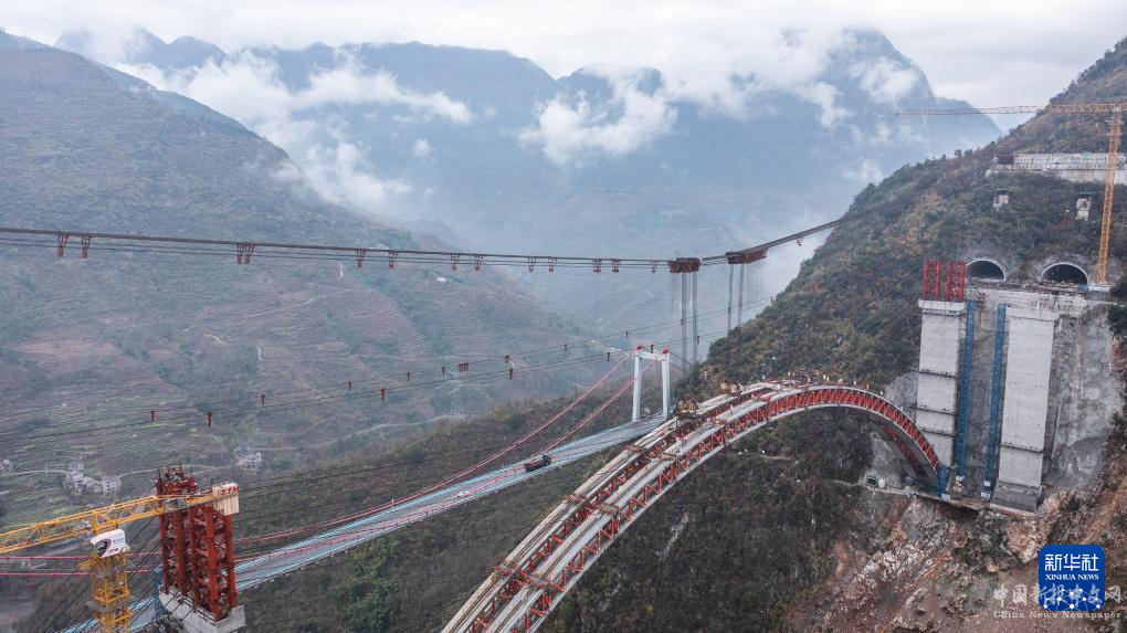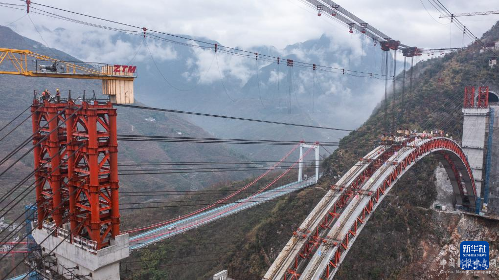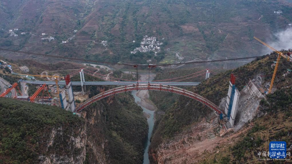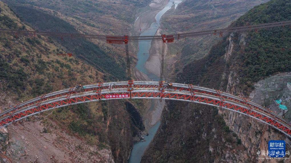 納晴高速烏蒙山大橋主拱圈右幅順利合龍(1月11日攝,無人機照片)。
