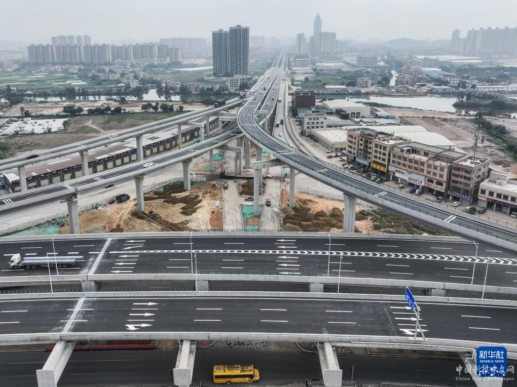 1月12日拍攝的位于中山市坦洲鎮(zhèn)的坦神北路龍?zhí)粱ネㄏ碌钠浇宦房?,這里原是嚴(yán)重交通堵點(diǎn)(無人機(jī)照片)。