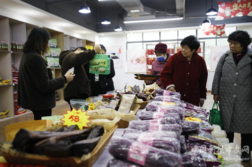 走進館內(nèi),東陽紅、金甲吉、君玲食品、黃花菜、湖之酒、南岳黃精、成怪豆腐乳等系列產(chǎn)品陳列在貨架上,既有“老字號”產(chǎn)品,又有“土”味十足的幫扶農(nóng)產(chǎn)品。參觀、購物的市民絡(luò)繹不絕,綠色優(yōu)質(zhì)的農(nóng)副產(chǎn)品深受大眾的喜愛。