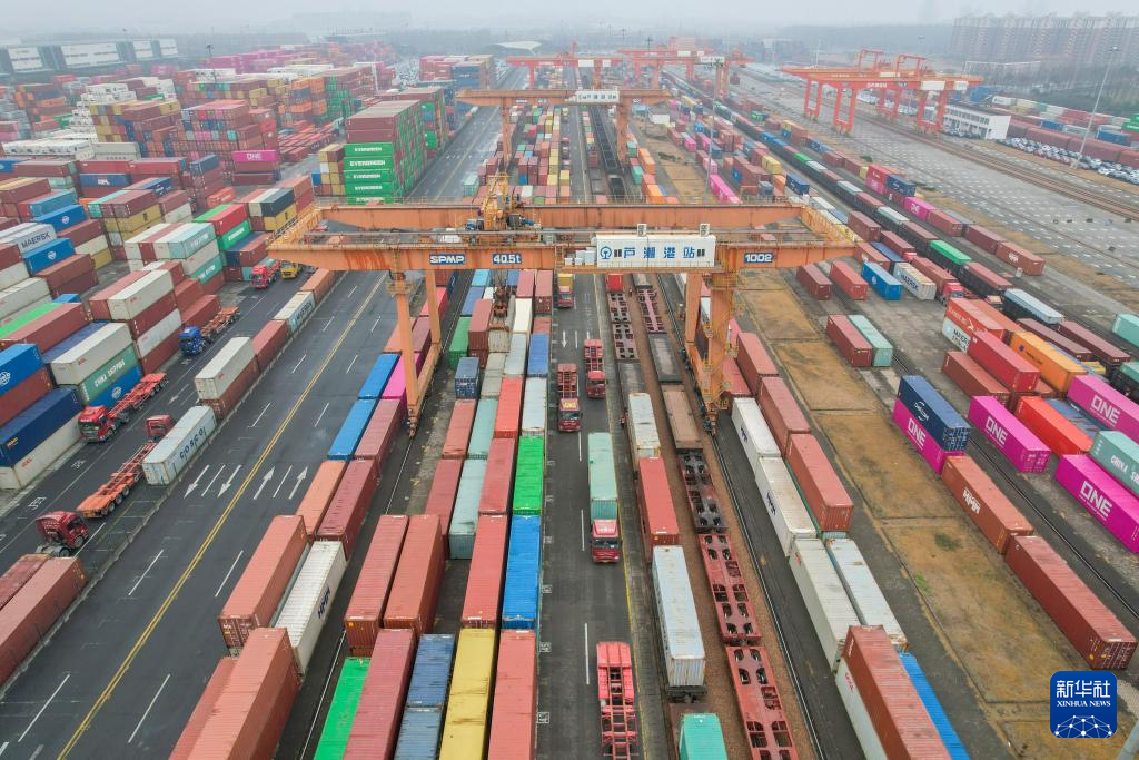 1月19日拍攝的上海蘆潮港集裝箱中心站(無(wú)人機(jī)照片)。