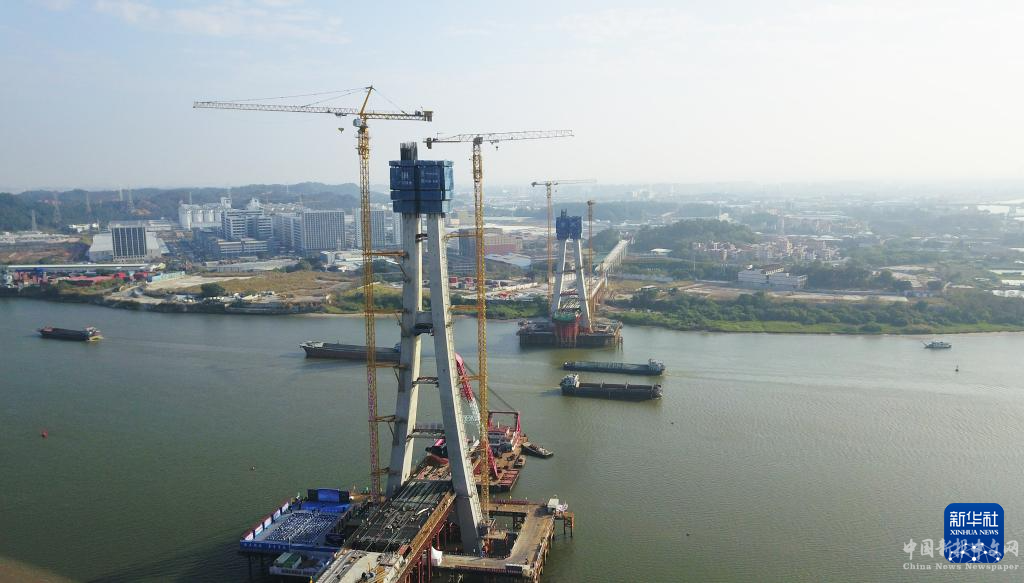 這是1月21日拍攝的佛山特大橋首片鋼梁吊裝作業(yè)現場(無人機照片)。