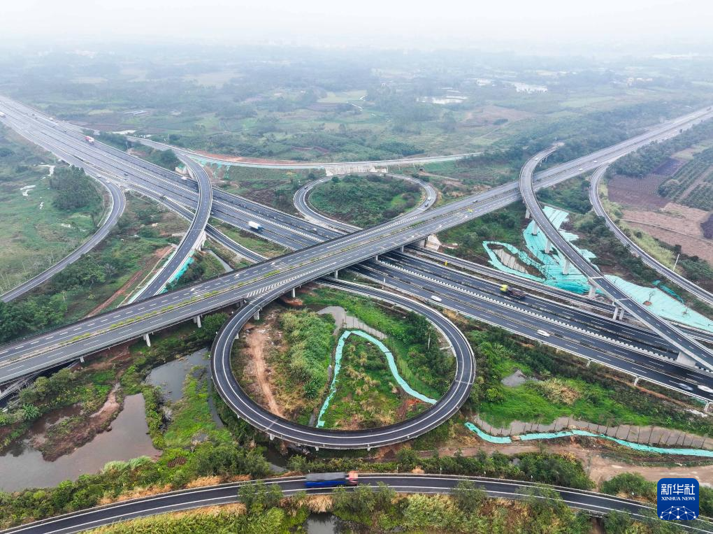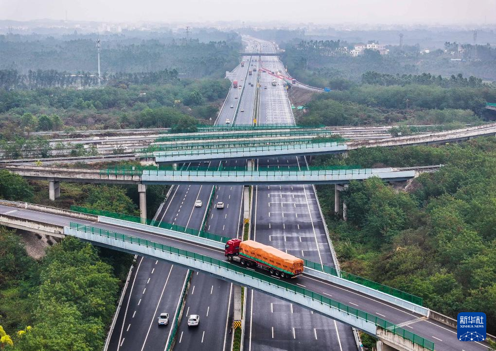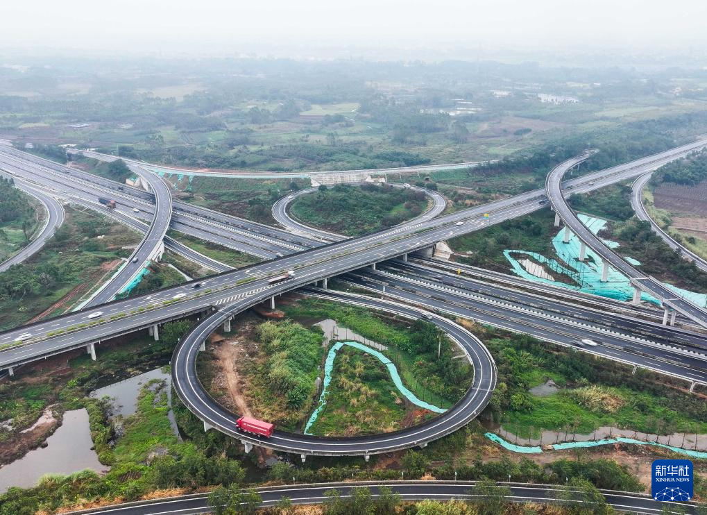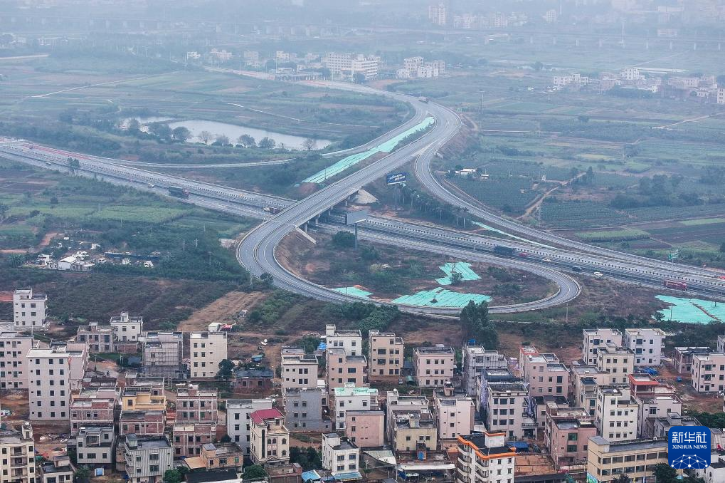 近期建成通車的東坡嶺樞紐位于湛江市遂溪縣,是沈海和蘭海兩條國家高速公路的交匯點(diǎn)(無人機(jī)照片,1月23日攝)。
