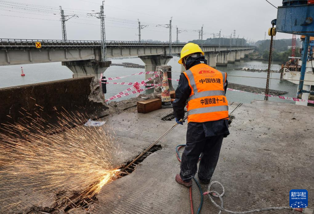 1月23日,施工人員在沈海國家高速茂湛段拆除舊石門大橋。