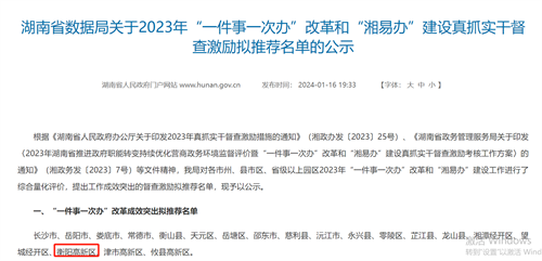 喜報!衡陽高新區(qū)三項工作?獲省真抓實干督查激勵公示