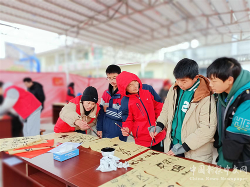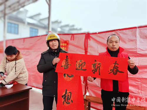 元月24日,湖南省攸縣寧家坪鎮(zhèn)坪塘村“家校社”舉行“我家對(duì)聯(lián)我來寫”親子主題活動(dòng),近百老師、學(xué)生、家長、村民歡聚一堂,師生們?cè)?0張大桌上揮毫潑墨,將一幅幅帶著墨香的春聯(lián)送往村民,表達(dá)著“家校社”對(duì)他們將即到來的新年春節(jié)的美好祝福。