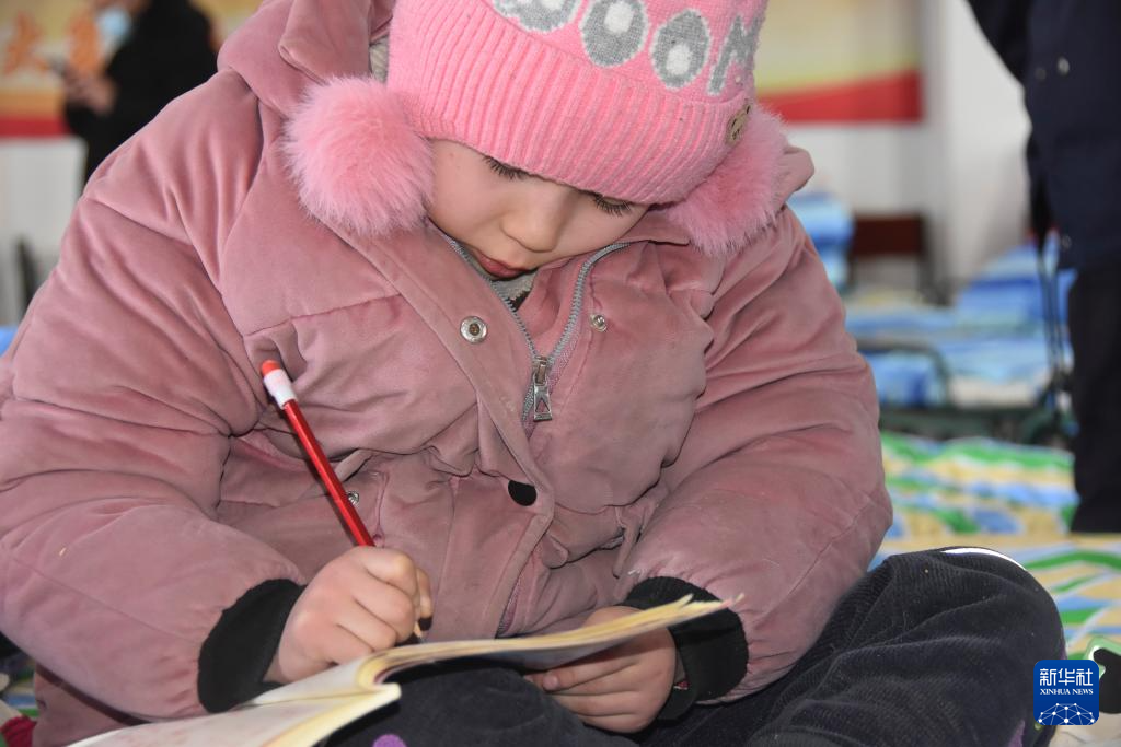 1月24日,小朋友在烏什縣一處安置點寫作業(yè)。
