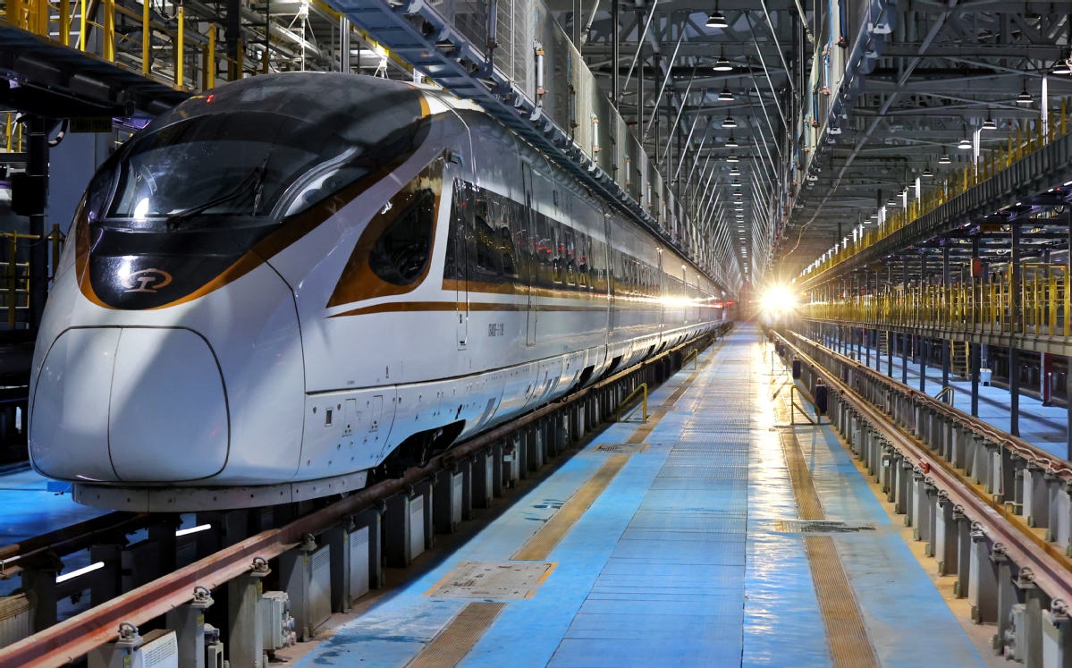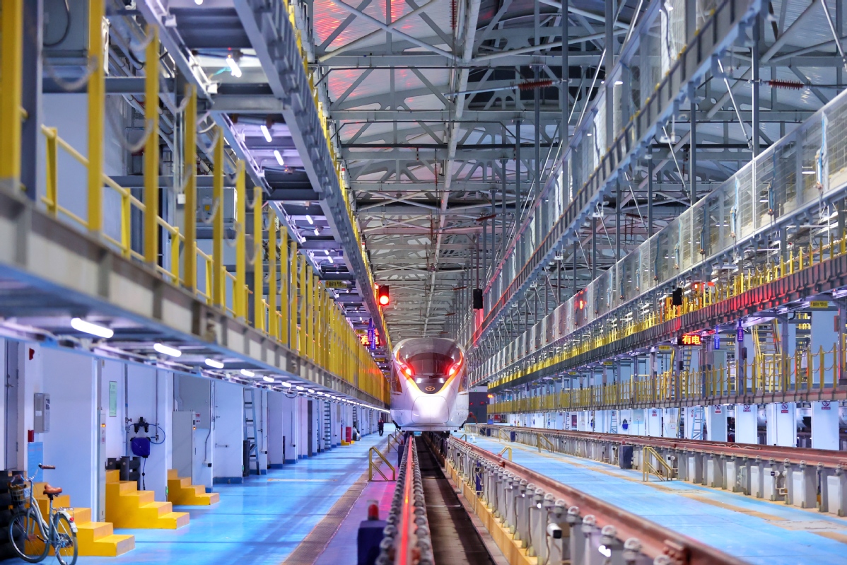 駛?cè)霗z修庫(kù)進(jìn)行每日檢修的動(dòng)車組列車。中國(guó)日?qǐng)?bào)記者 姜東 攝
