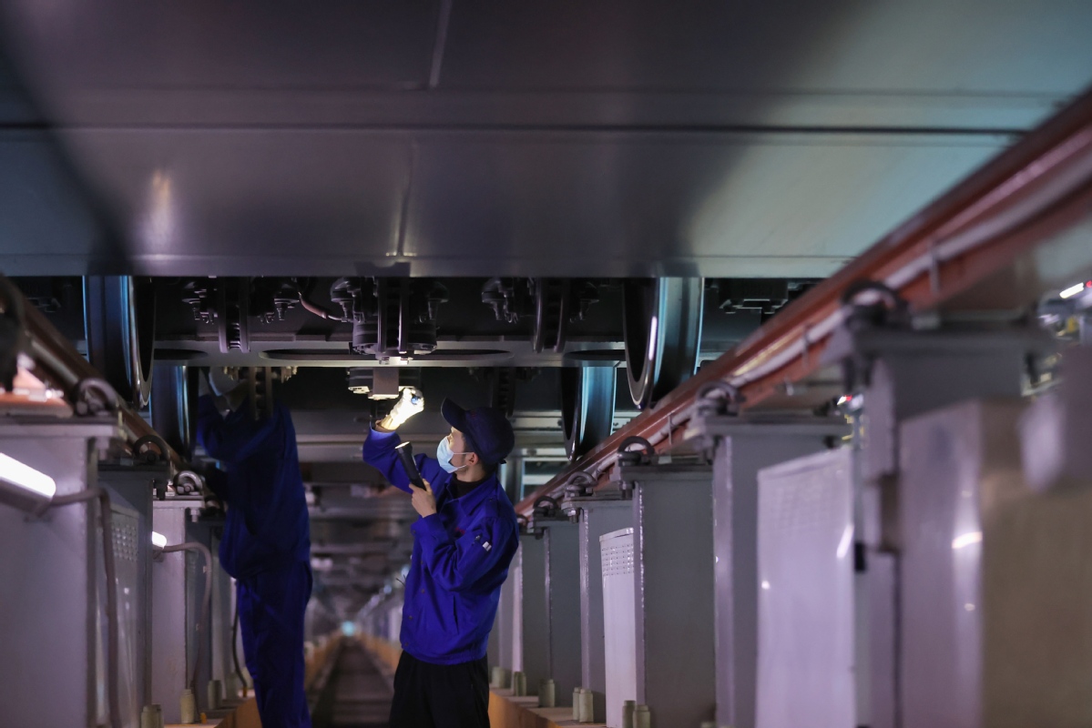 檢修人員對(duì)車體進(jìn)行檢查。 中國(guó)日?qǐng)?bào)記者 姜東 攝