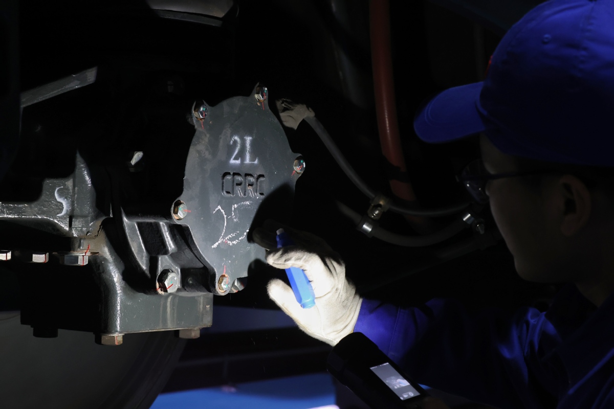 檢修人員對(duì)轉(zhuǎn)向架進(jìn)行檢查。中國(guó)日?qǐng)?bào)記者 姜東 攝