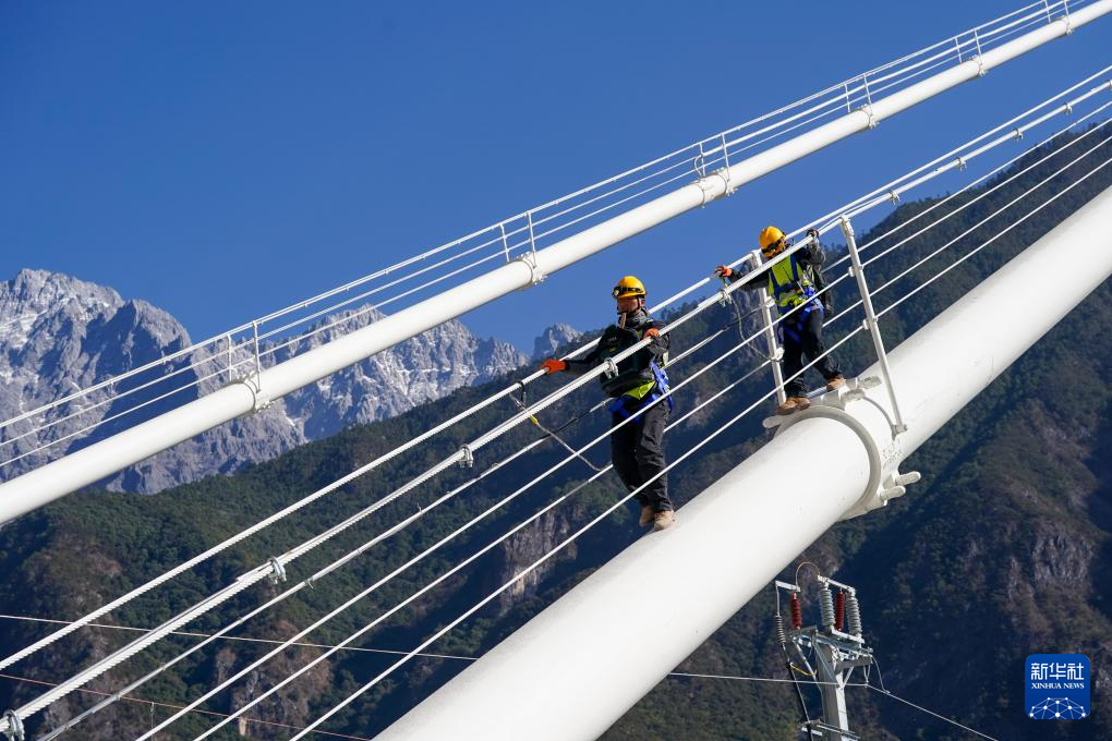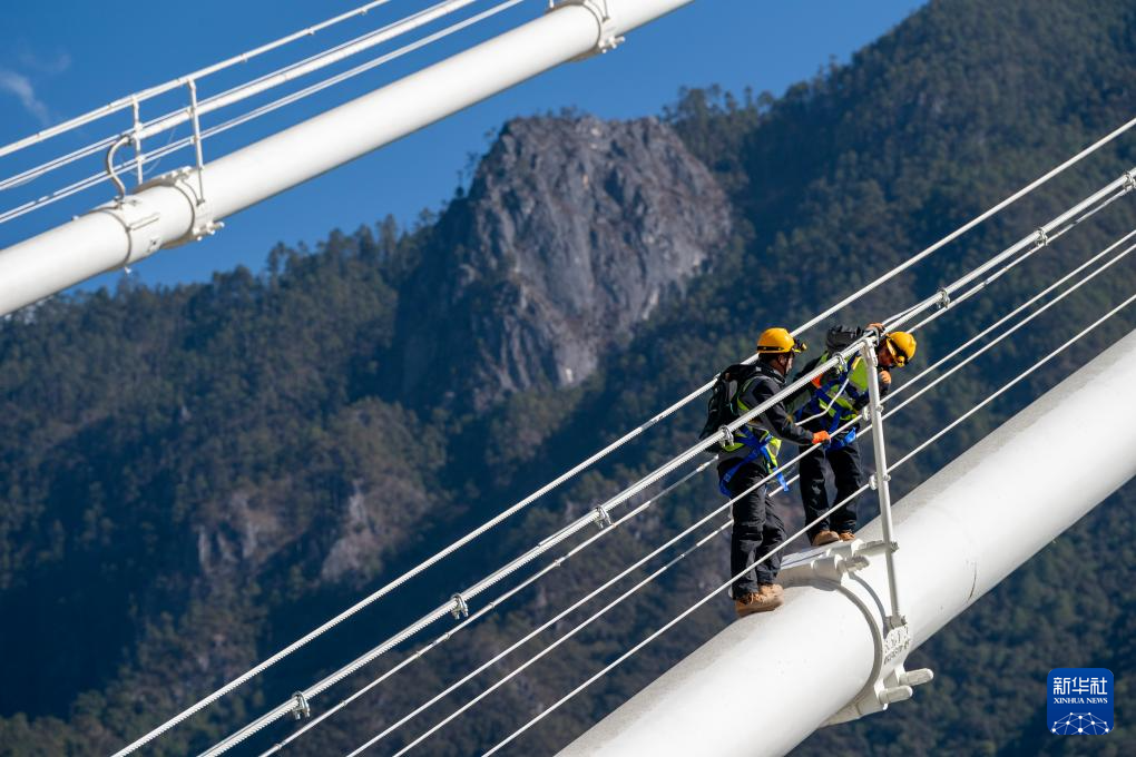 新尚綜合維修工區(qū)班班長楊應(yīng)文介紹,他和工友負(fù)責(zé)對大橋主纜、塔身主體結(jié)構(gòu)、大橋阻尼器等進(jìn)行巡檢,難度最大的地方在于主纜檢修,單側(cè)巡檢往返大概需要3小時(shí),行走在主纜上,腳下是湍急的虎跳峽江水,身旁是呼嘯的江風(fēng),每一步都需要格外小心。