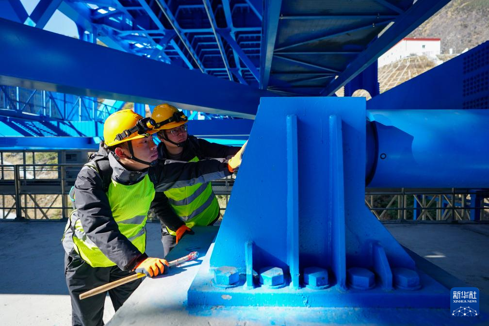 1月24日,工區(qū)職工趙澗泉(左)、羅星海在查看大橋阻尼器。
