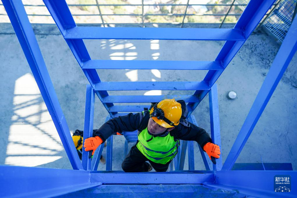 1月24日,工區(qū)職工趙澗泉在通過檢修爬梯。