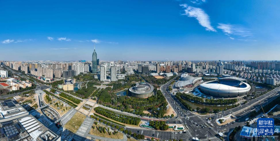 常州城區(qū)景色(2023年12月21日攝,無人機(jī)照片)。