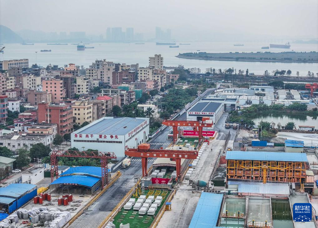 深江鐵路珠江口隧道東莞虎門段盾構(gòu)起點(diǎn)(1月29日攝,無人機(jī)照片)。深江鐵路建成通車后將把深圳、東莞、廣州、中山、江門這五座大灣區(qū)城市更緊密連接在一起,實(shí)現(xiàn)深圳前海自貿(mào)區(qū)與廣州南沙自貿(mào)區(qū)半小時高鐵互聯(lián)互通,助力打造“軌道上的大灣區(qū)”。