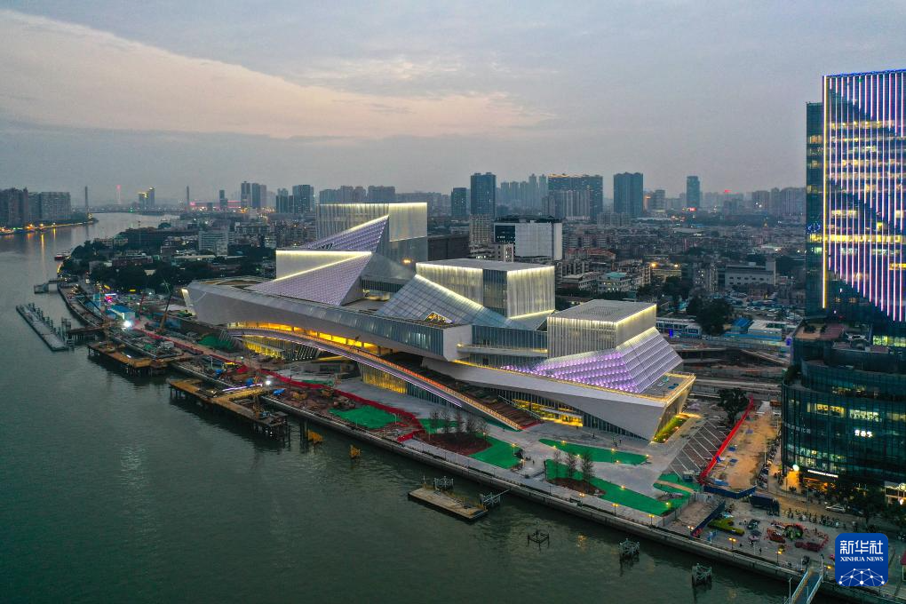 由中建三局承建的白鵝潭大灣區(qū)藝術(shù)中心進(jìn)行亮燈測試(1月31日攝,無人機(jī)照片)。白鵝潭大灣區(qū)藝術(shù)中心位于廣州珠江白鵝潭,該項(xiàng)目集廣東美術(shù)館、廣東非物質(zhì)文化遺產(chǎn)展示中心、廣東文學(xué)館“三館合一”,目前已進(jìn)入室內(nèi)裝修工程收尾階段。