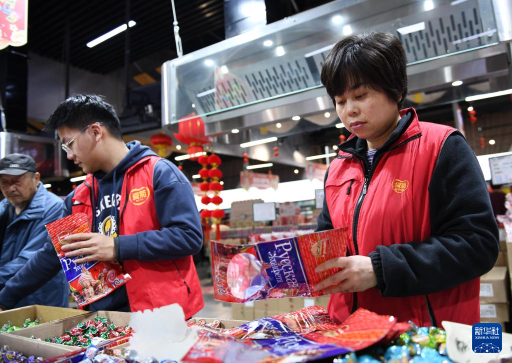 2月1日,工作人員在“中歐班列(西安)進(jìn)口商品年貨節(jié)”上為消費(fèi)者打包中亞糖果產(chǎn)品。