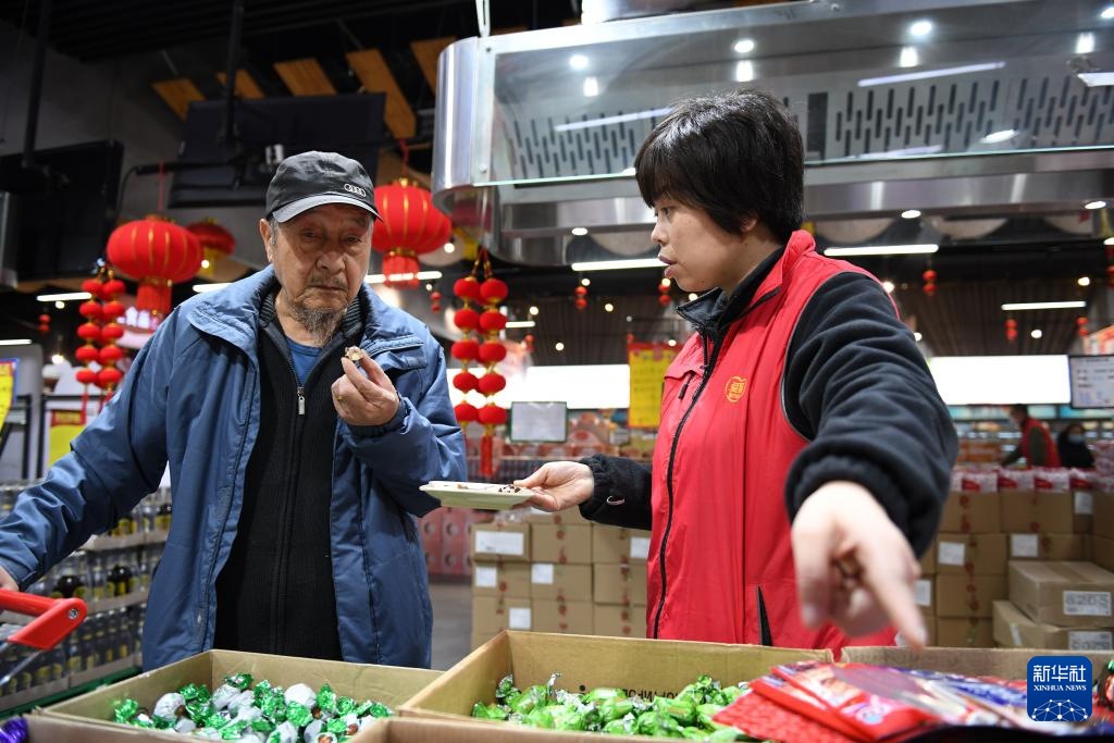 2月1日,消費(fèi)者在“中歐班列(西安)進(jìn)口商品年貨節(jié)”上挑選中亞糖果。