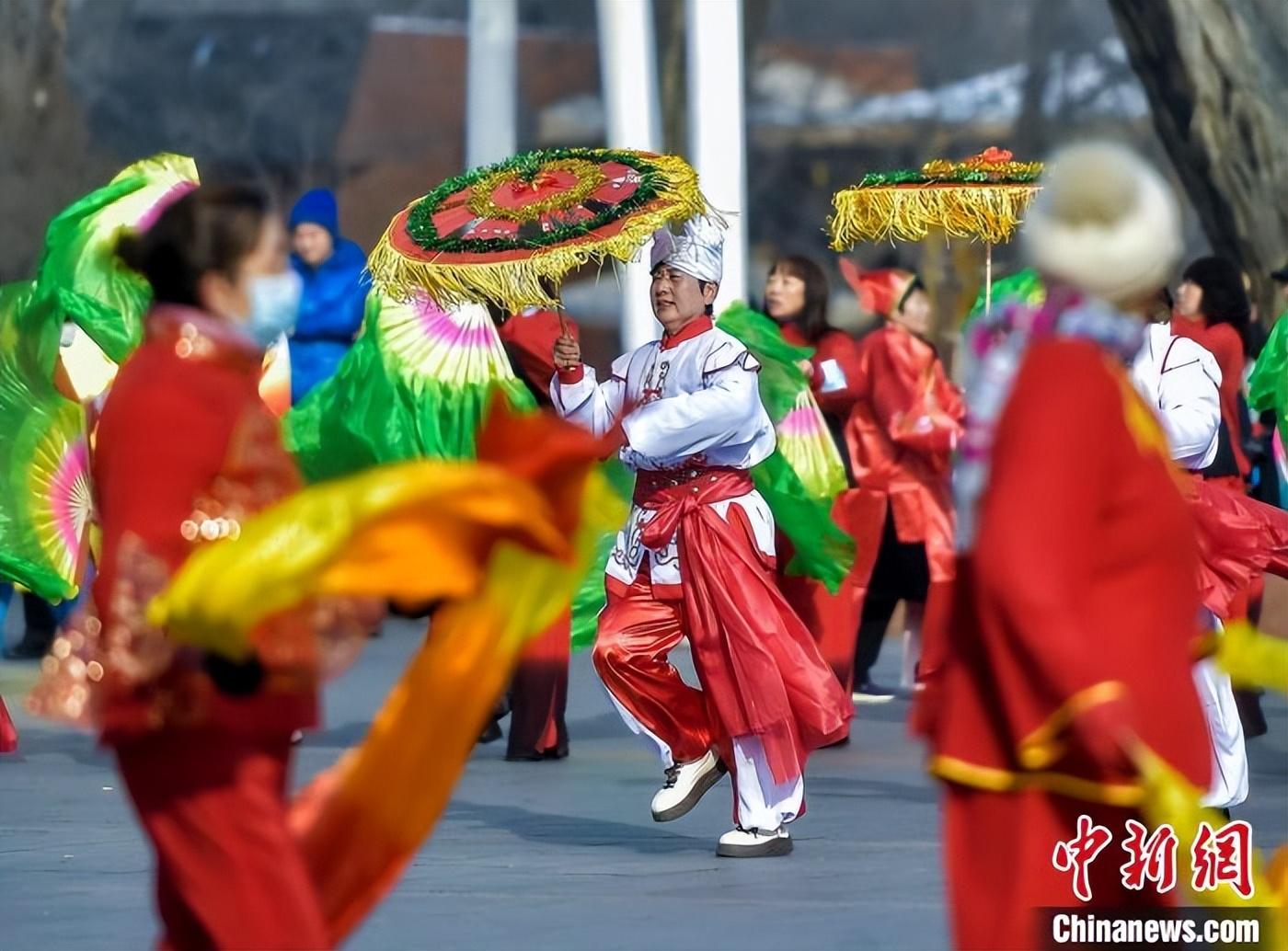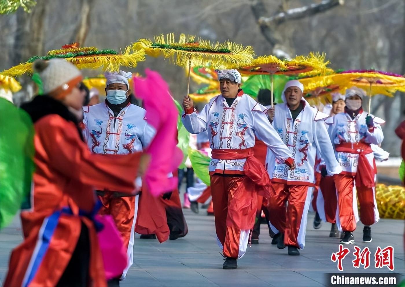 2月5日,新疆烏魯木齊市人民公園,一支民間社火隊(duì)伍隨著鼓點(diǎn)聲,扭起秧歌、揮舞彩扇,有序地進(jìn)行排練?,F(xiàn)場鑼鼓喧天,歡樂喜慶的氣氛,吸引眾多市民圍觀,感受濃濃年味。